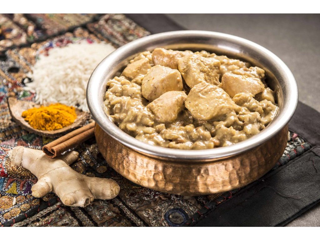 Probieren Sie das echte Indien, zubereitet nach traditionellen Rezepten... Hähnchenbruststücke in einer Sauce mit Kokosmilch, Sahne und Garam-Masala-Gewürzen direkt aus dem Fernen Osten. Sie können in jedem Stück eine Vielzahl von Zutaten wie Zimt, Ingwer, Zitrone und Cayennepfeffer riechen. Alle Zutaten vereinen sich zu einem einzigartigen Geschmackserlebnis.
