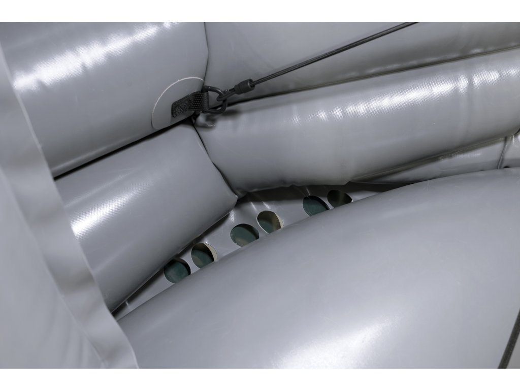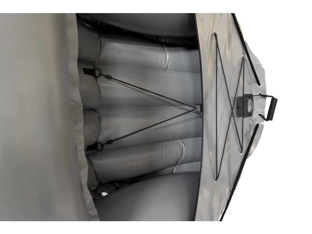 Der stabile zylindrische Rumpf mit querliegenden Zylindern (Sitzen) bietet der Besatzung festen Halt. Die hervorragende Stabilität und das wendige Fahrverhalten auch bei voller Beladung sind das Ergebnis der optimierten Konstruktion und des geringen Widerstands. Der selbstlenzende Boden mit Klappenöffnungen ermöglicht eine effiziente Wasserableitung ohne Einbußen bei der Fahrbarkeit.