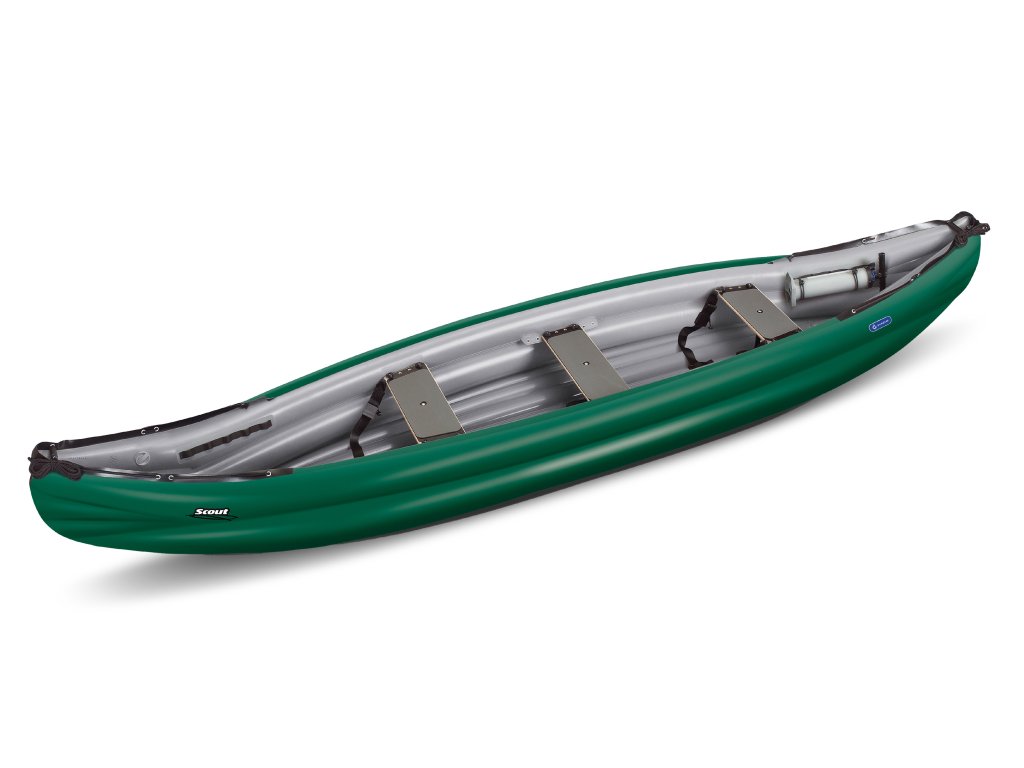 Die Rumpfform des Scout Standard ähnelt einem klassischen offenen Kanu mit einem scharfen Bug, der leicht durch das Wasser schneidet und den Widerstand reduziert. Der breite und flache Boden verleiht dem Boot eine hohe Stabilität, die besonders von Anfängern oder Crews mit Kindern geschätzt wird. Dank der Länge von 445 cm und dem Verstrebungssystem ist das Boot nicht nur schnell, sondern auch sehr wendig auf Seen, Flüssen und Stromschnellen bis WW3.