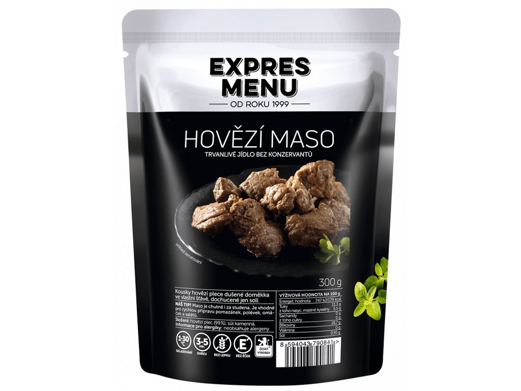 Pieces of beef shoulder stewed in its own juices, seasoned with salt only. It is suitable for quick preparation of spreads, soups, sauces and salads.