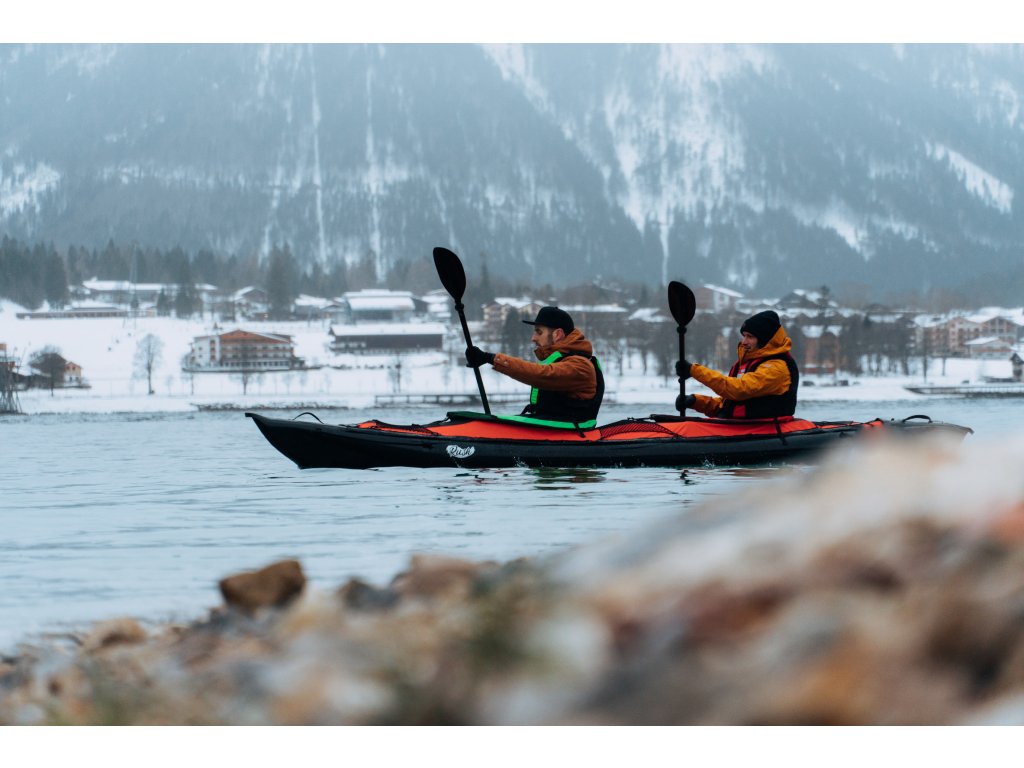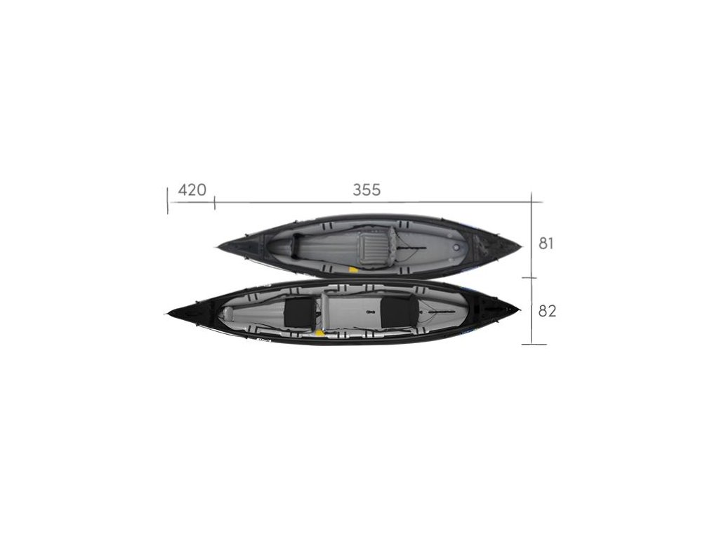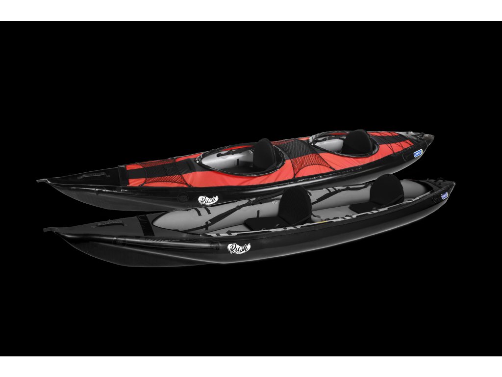 Rush 2 (420 × 82 cm, 15.5 kg, 195 kg capacity) is a hybrid two-seater inflatable kayak that combines high-pressure drop-stitch technology with classic inflatable chambers. This concept allows for maximum rigidity, great stability and excellent glide. Suitable for touring as well as for multi-day paddling expeditions with equipment.