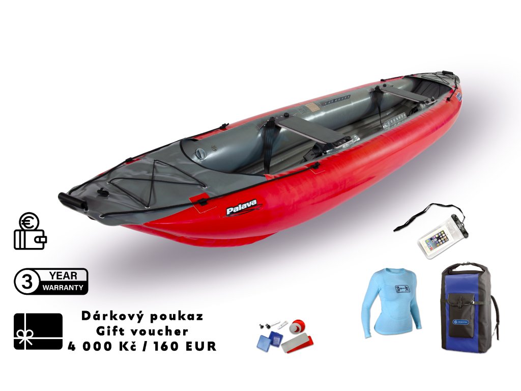 Gumotex Pálava 400 is a constant in the category of inflatable canoes, which has proven itself to thousands of riders thanks to its versatility, spaciousness and reliability. The upgraded hull offers improved handling and easy maneuverability. The boat is stable, comfortable and ready for a variety of expeditions - from family trips to paddling expeditions. The combination of quality outfitting, pressure relief valve and self-filling bottom brings high comfort and safety. This makes the Palava 400 the perfect choice for paddlers of all levels.