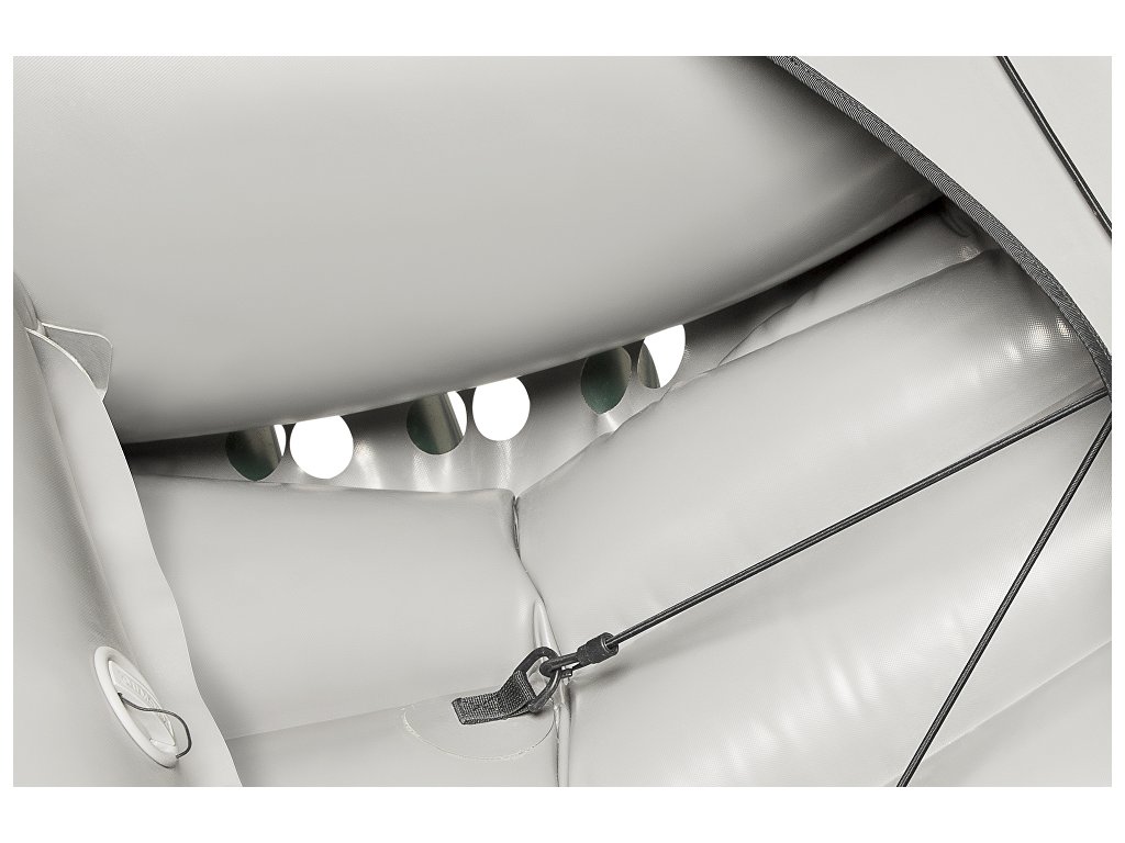 NITRILON® is a three-layer material with PES fabric and rubber compounds - highly resistant to abrasion, UV radiation and chemicals.CR foils (abrasion-resistant film on the bottom) is a special layer that protects the hull from wear and tear on rocky ground and in frequent deployment in rentals. It significantly increases durability and operational reliability.