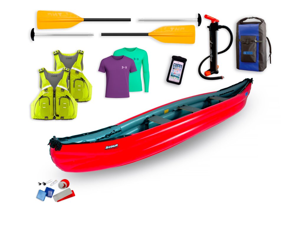 The hull shape of the Scout Standard resembles a classic open canoe with a sharp bow that easily cuts through the water and reduces drag. The wide and flat bottom gives the boat high stability, which is especially appreciated by beginners or crews with children. Thanks to the 445 cm length and the bracing system, the boat is not only fast but also very maneuverable on lakes, rivers and rapids up to WW3.