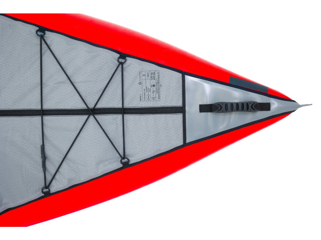 The kayak is equipped with reinforcements for higher rigidity, which significantly improves its stability and handling characteristics. Thanks to the closed cockpit with zippers on the front and back, it provides greater protection from splashing water and easy access to equipment. The PE foam seat and adjustable footrest provide a comfortable position even on longer cruises.