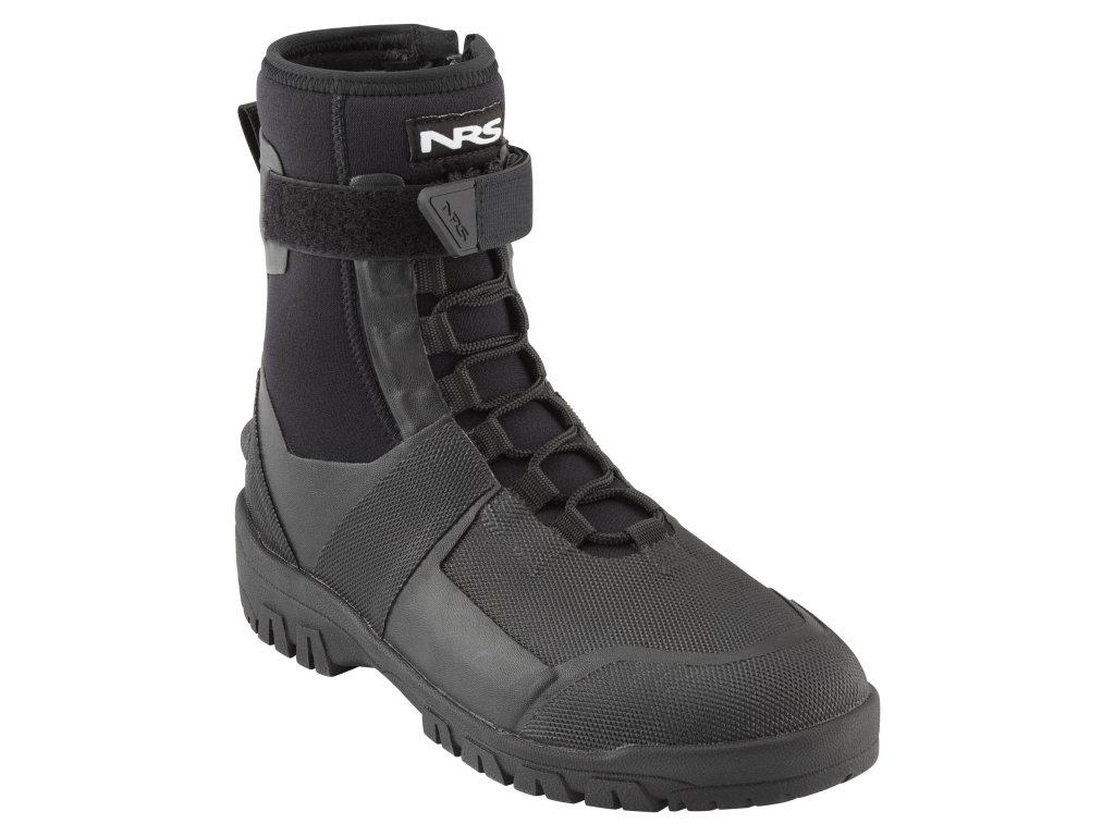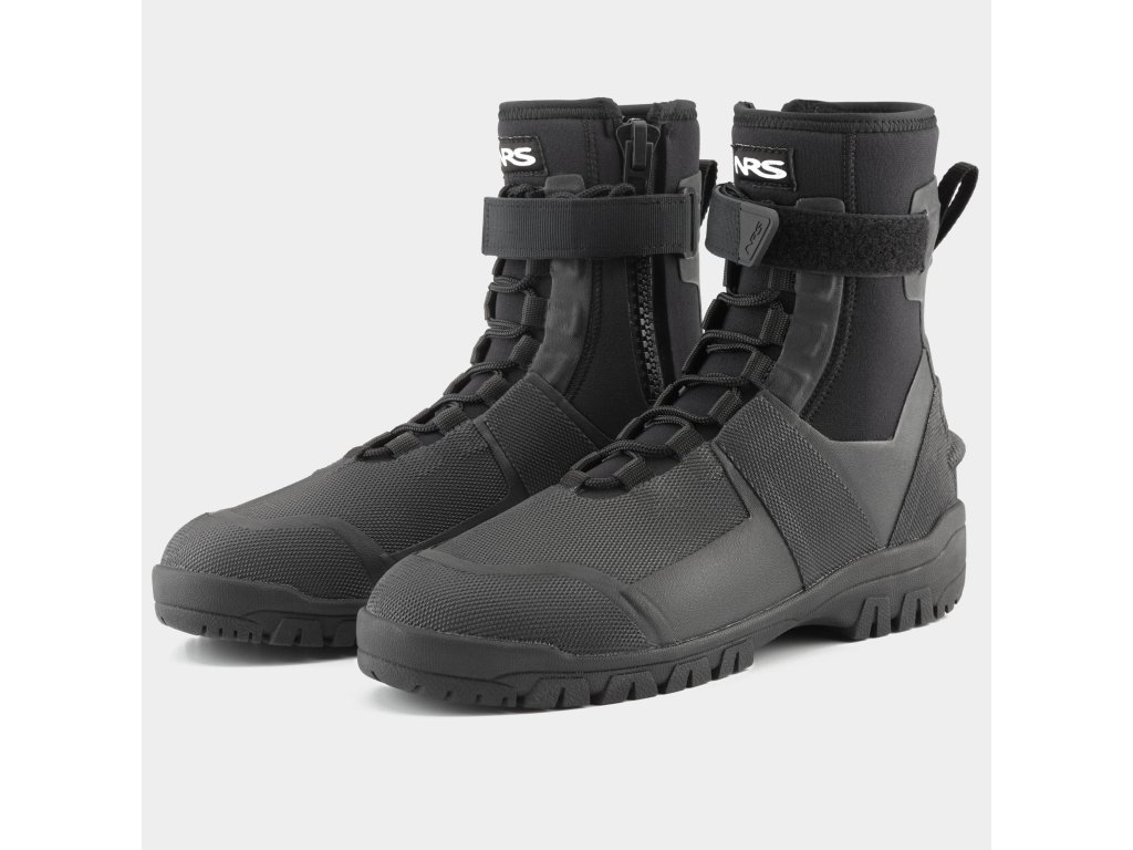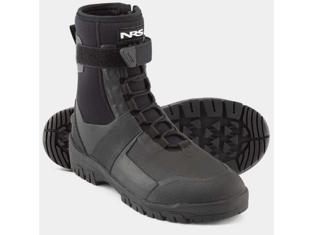NRS Workboot Wetshoes combine a 5mm neoprene upper, synthetic leather and a durable rubber outsole with a distinctive lug pattern for exceptional traction. The 7mm neoprene insole absorbs shock, while the back features a YKK zipper, lacing and Velcro for a precise and secure fit. High abrasion-resistant panels increase durability and a heel loop makes it easy to slip on - the boots are ready for tough deployments on the water and shore :contentReference[oaicite:1]{index=1}.