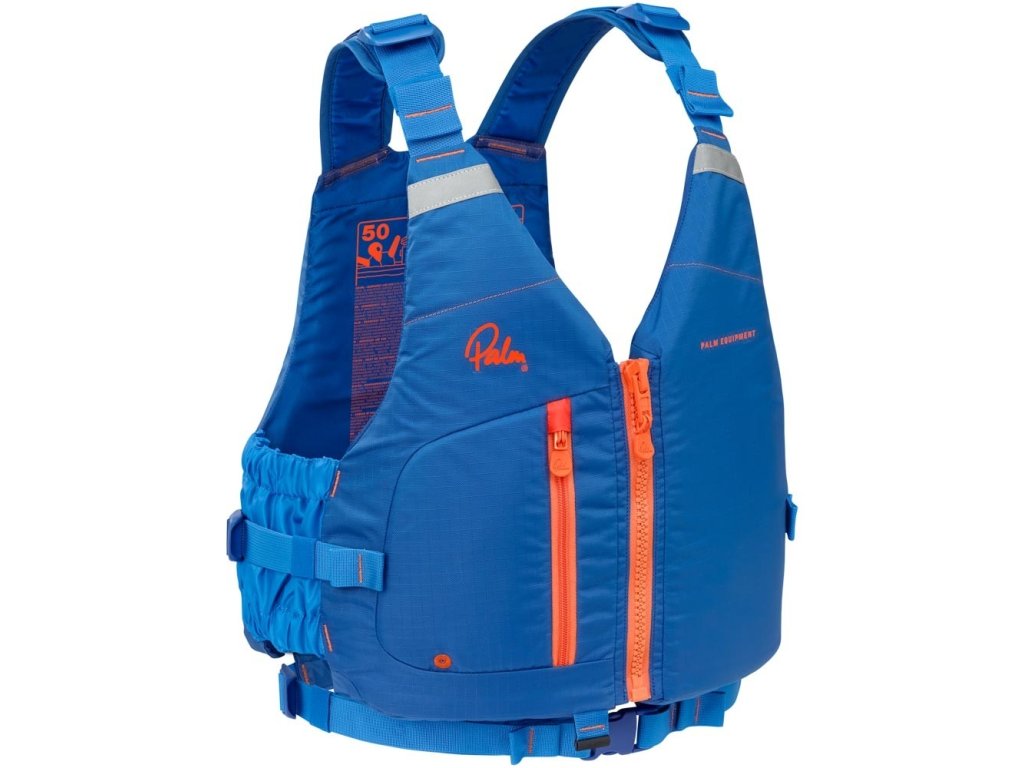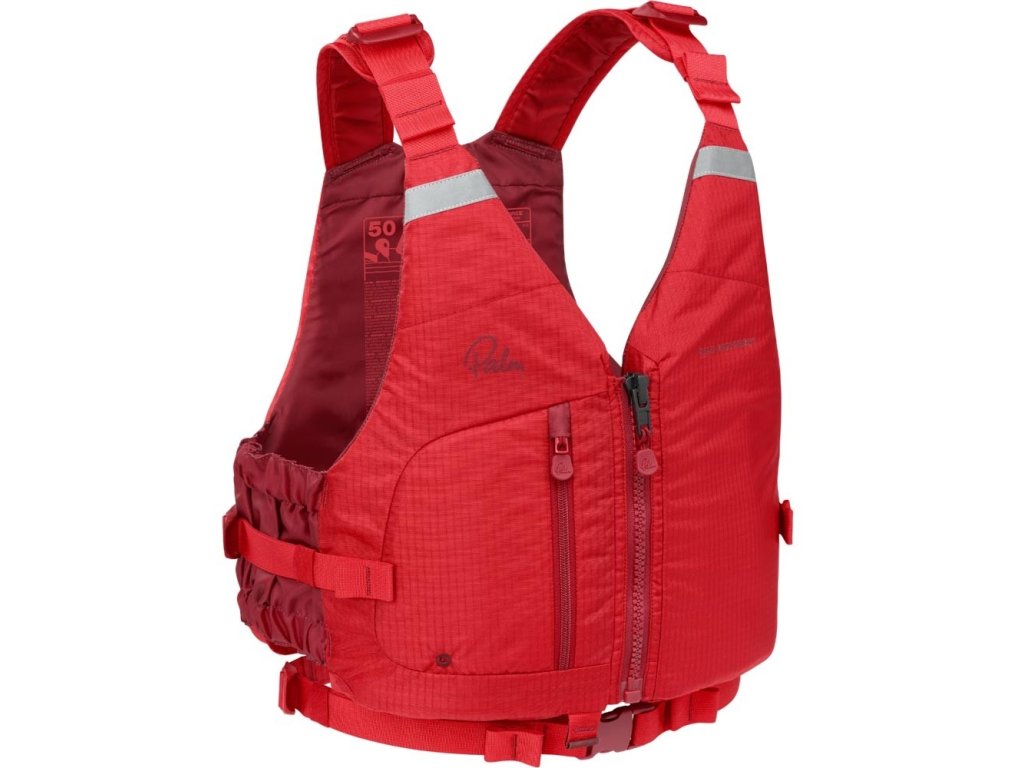 PFD buoyancy label: Proper seating is more important than the displacement by weight category alone. All Palm PFDs have a margin above the CE/ISO minimum; weight ranges can be found on the label inside the vest.