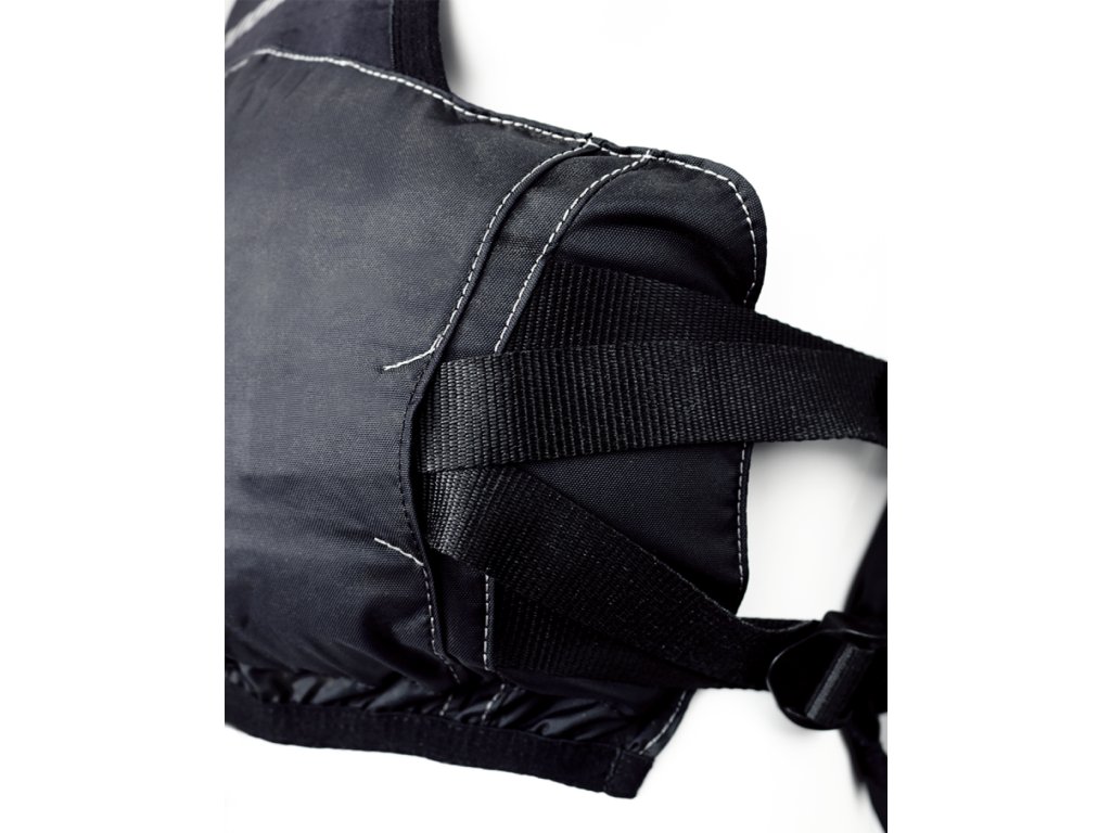 Deimos PFD is a low-profile vest for kayakers, canoeists and sailors, developed for maximum freedom of movement and performance at race pace. The front and back use a thin foam block (~40 mm) that closely follows the body. Self-adjusting shoulder straps, 4-point tightening on the sides and pocketsStrapPocket to hide the ends of the straps to ensure a clean, catch-free shape and a precise fit.