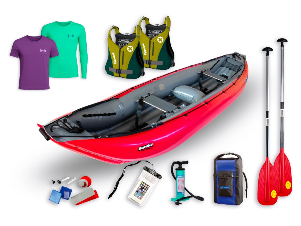 - Kánoe: Nafukovací kánoe Baraka – červená nebo zelená