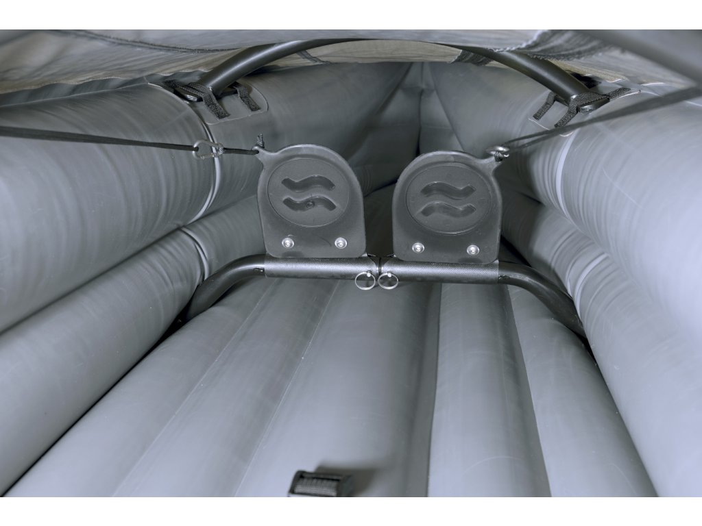 - Složení materiálu: Vnější nános na bázi syntetického kaučuku, kotvicí vrstva, vysokopevnostní PES tkanina (1 100 dTex), další kotvicí vrstvy a vrchní vrstva drop-stitch tkaniny.