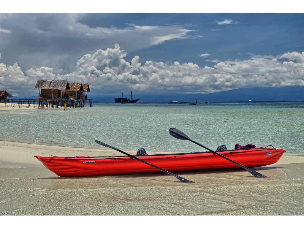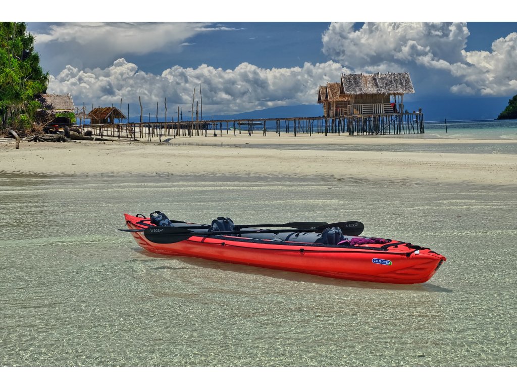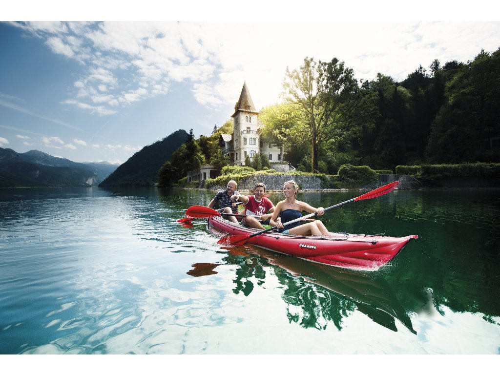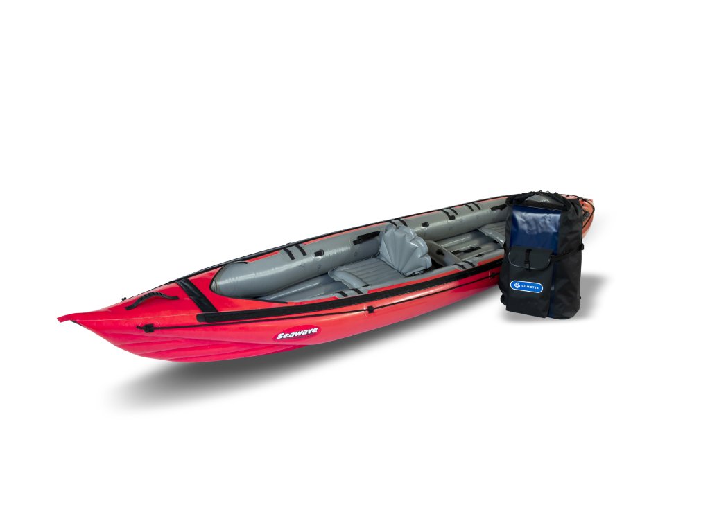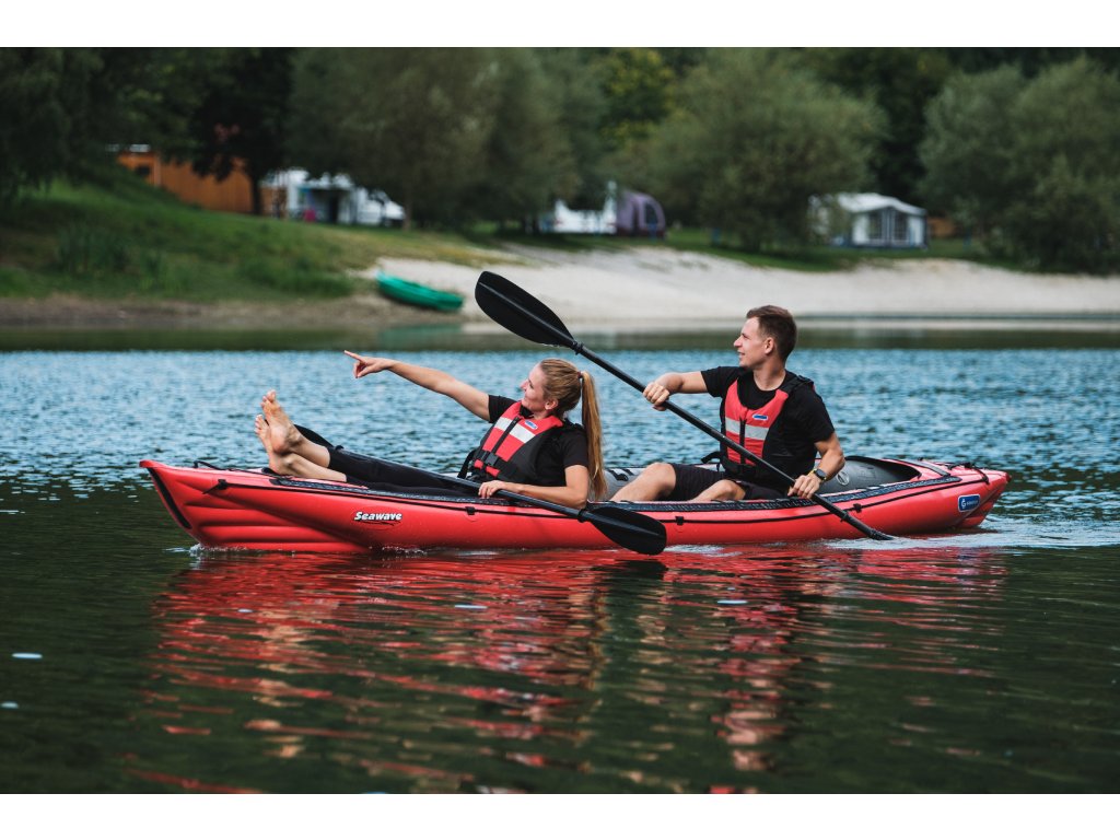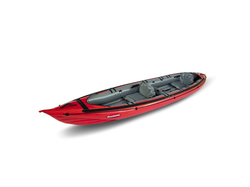 Seawave (455 × 80 cm, 17,5 kg, nosnost 250 kg) je nejuniverzálnější model značky Gumotex pro plavbu na mořských pobřežích, jezerech i klidných řekách. Variabilní konfigurace umožňuje snadno přizpůsobit počet míst – od sólo výpravy až po rodinnou expedici. Díky prodlouženému trupu, výztuhám v podlaze a výbornému vedení stopy se jedná o jeden z nejrychlejších a nejlépe ovladatelných nafukovacích kajaků na trhu. Kompatibilita s krycími kokpity pro 1 i 2 osoby rozšiřuje použitelnost i do náročnějších podmínek.
