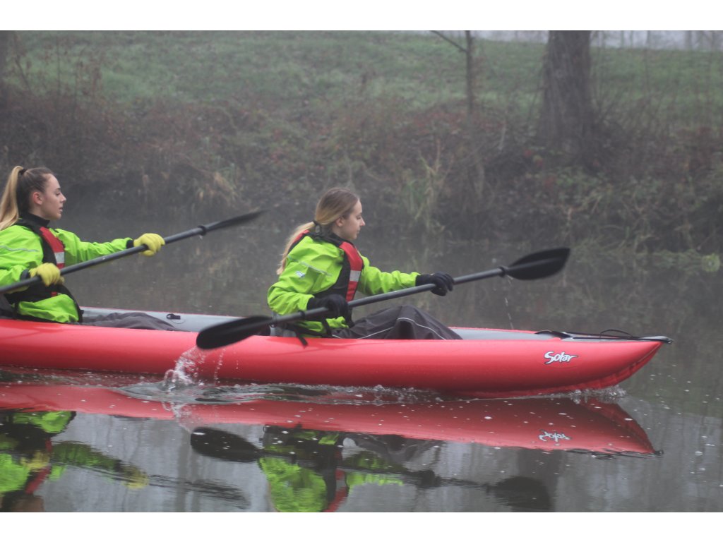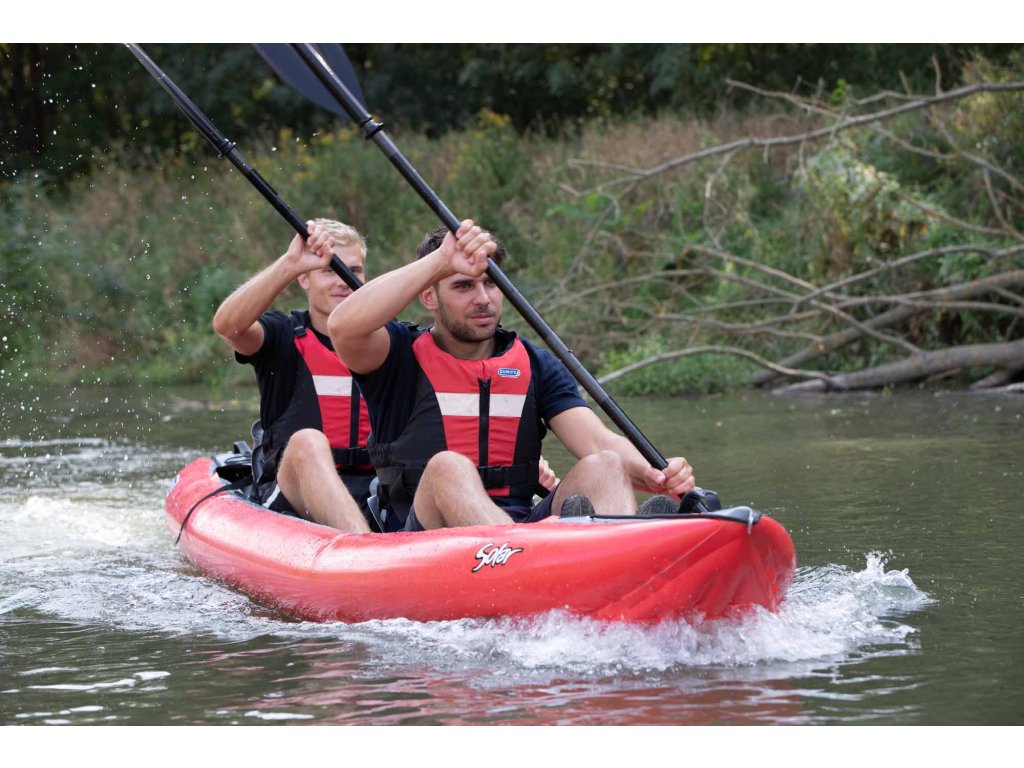 Rada odborníka: Solar je ideální loď pro začátečníky. Je tak stabilní, že se v něm nebudete bát ani při vlnách od projíždějících lodí. Pro dospělou osobu doporučujeme kajakové pádlo délky 220–230 cm. Nezapomínejte vždy použít směrovou ploutev (finu) – loď s ní drží směr mnohem ochotněji.