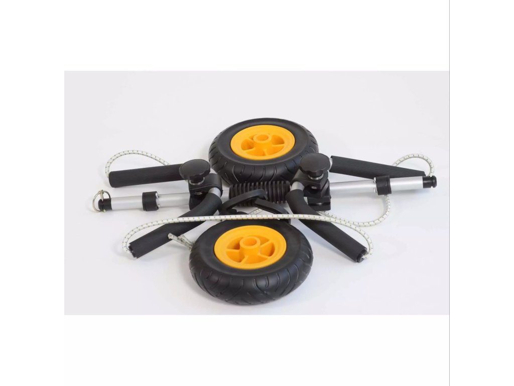 A kocsi nagyméretű kampókkal ellátott rugalmas rögzítőpánttal van ellátva, amely szilárdan és biztonságosan tartja a kajakot, további rögzítőpántok nélkül. A kompakt összecsukható kialakításnak köszönhetően könnyen tárolható a hajóban vagy a csomagtartóban. Szélessége és stabil felépítése miatt alkalmas nehezebb csónakok szállítására is.