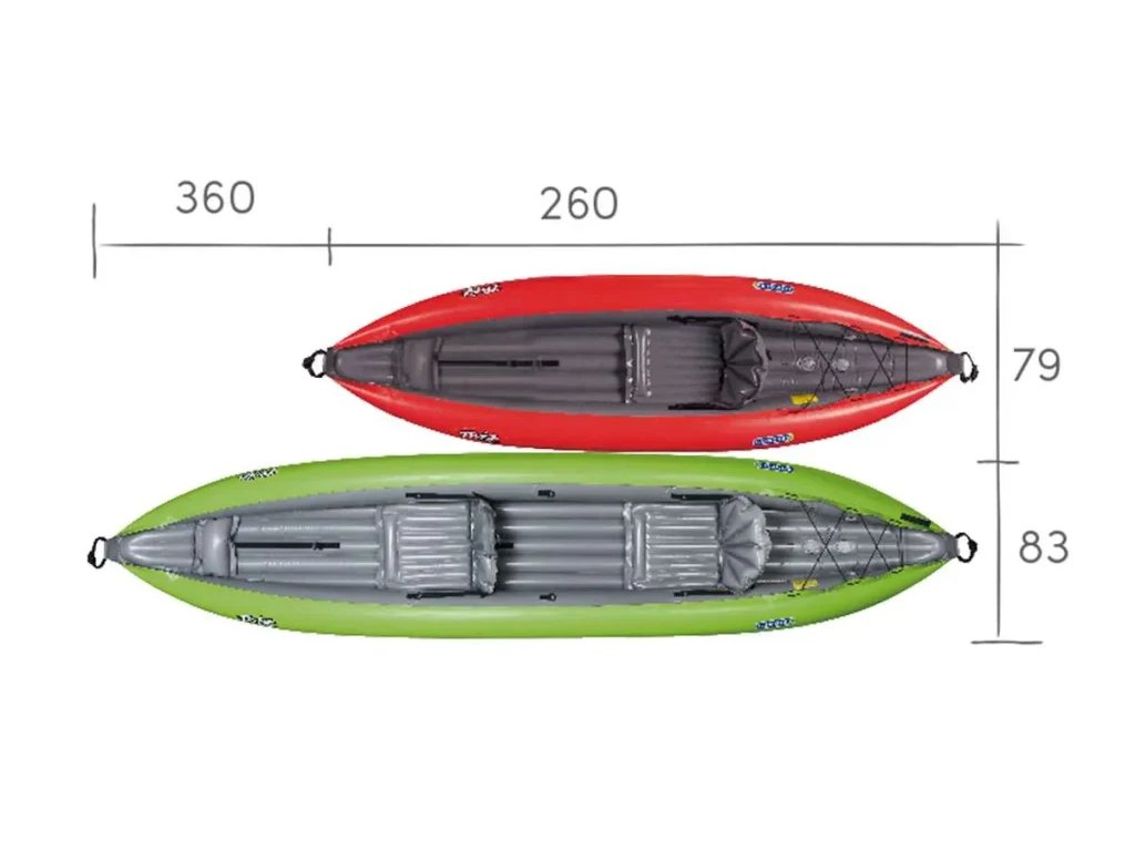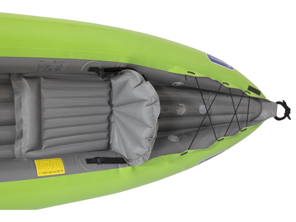 Twist 1 (260 × 79 cm, 7,4 kg, 100 kg teherbírás) egy kompakt, együléses, felfújható kajak, amelyet tavakon és nyugodt folyókon való szabadidős csónakázáshoz terveztek. Stabil hajótestének, alacsony profiljának és irányított uszonyának köszönhetően jól tartja az irányt és könnyen kezelhető. A kényelmes, háttámlával ellátott ülés hosszabb utakon is kényelmet biztosít, a többfokozatú lábtartó pedig egyéni beállítást tesz lehetővé. Kis súlya miatt könnyen szállítható és hordozható.
