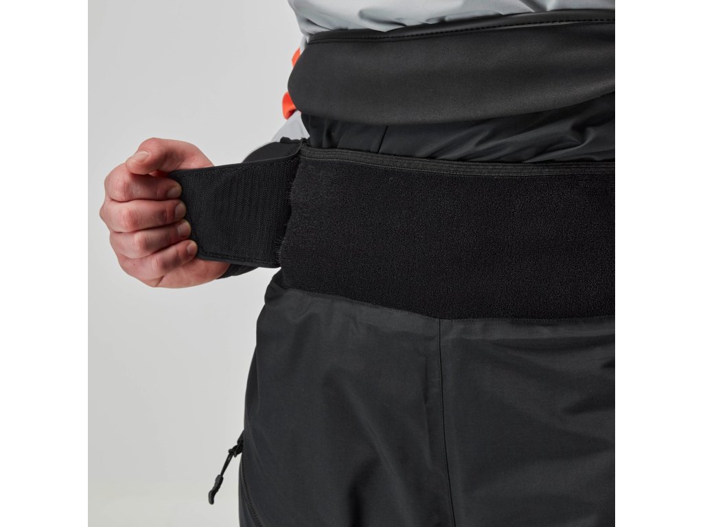 Kalhoty mají relaxovaný střih, který umožňuje snadné vrstvení oblečení bez omezení pohybu. Dvojitý pasový tunel s 20 cm nylonovým překrytím a 13 cm širokým neoprenovým pasem s háčkovým a smyčkovým zapínáním zajišťuje bezpečné a přizpůsobitelné utěsnění. Zesílené oblasti sedu a dolních končetin poskytují zvýšenou odolnost proti oděru, což je ideální pro náročné podmínky na vodě.