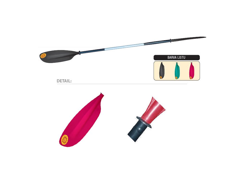 Plastové pádlo pro mořský kajak.