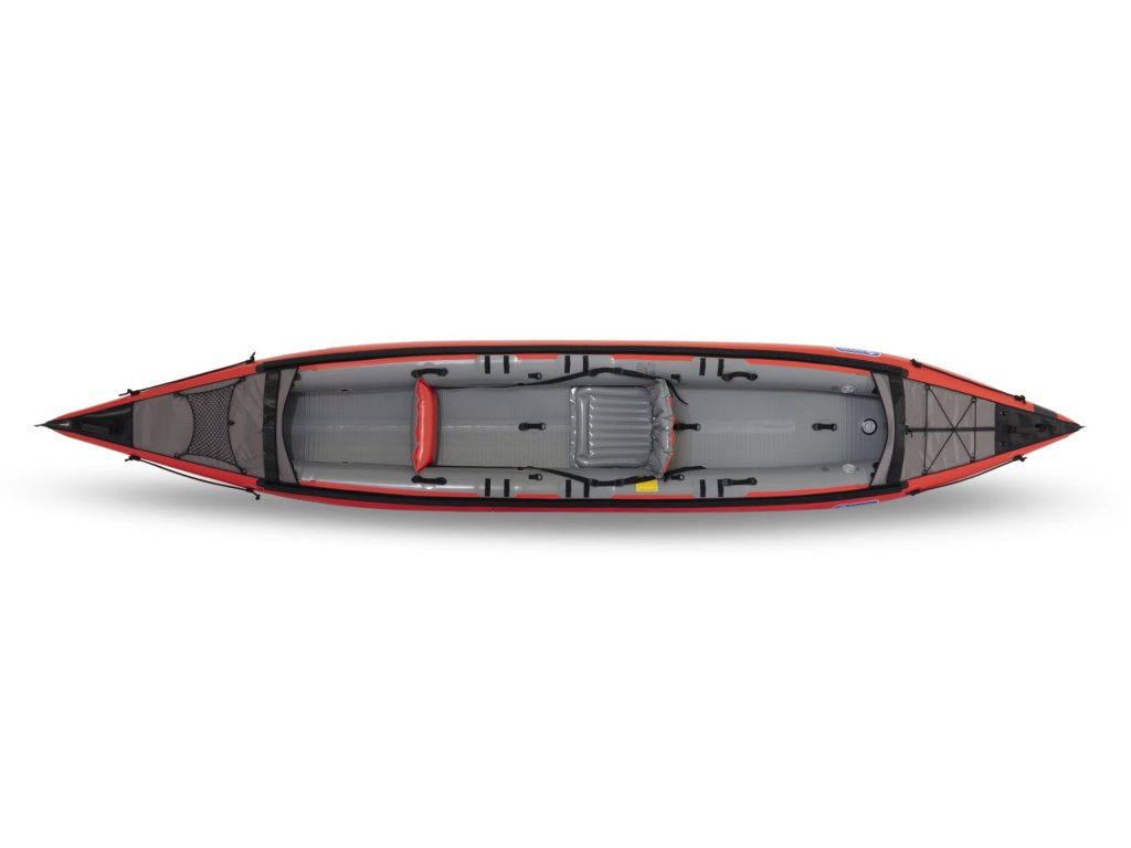 Dłuższy kadłub (470 cm) ze smuklejszą linią i wyraźniejszym rockerem przyczynia się do większej prędkości i spokojnego trzymania nawet na falach.Podłoga ze ściegiem przerywanym jest gęsto wzmocniona włóknami i działa przy wyższym ciśnieniu niż rolki boczne, zapewniając mocne i precyzyjne wyczucie jazdy.Płetwa kierunkowa (część łodzi) poprawia prowadzenie w linii prostej; opcjonalny ster ułatwia również sterowanie na wietrze i na długich trasach.