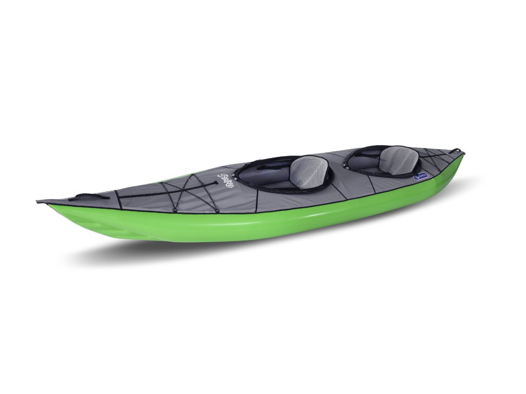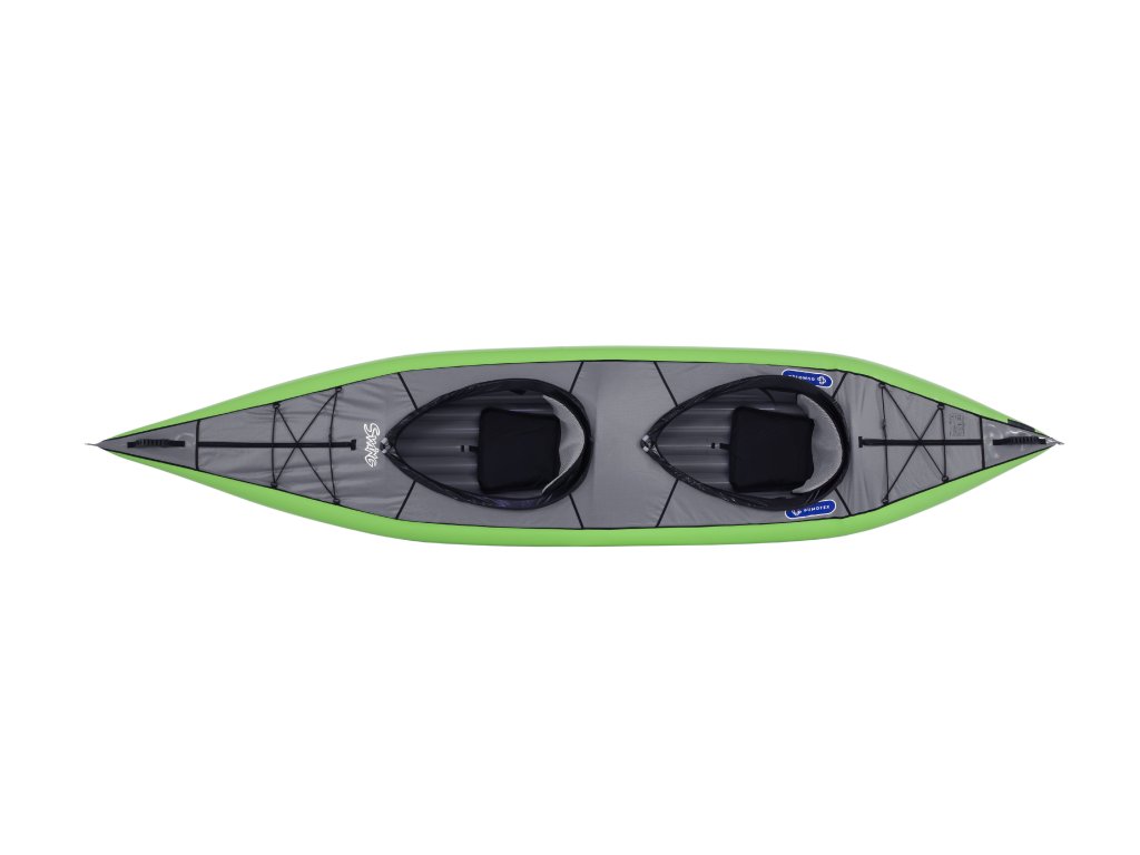Gumotex Swing 2 (402 × 87 cm, 14,3 kg, nośność 220 kg) to zamknięty kajak dwuosobowy przeznaczony do rekreacyjnego wiosłowania i turystyki. Dzięki niewielkiej wadze i stabilnemu kadłubowi nadaje się również dla mniej doświadczonych wioślarzy poszukujących wygodnej, bezpiecznej i łatwej w obsłudze łodzi na wycieczki po spokojnych rzekach, jeziorach lub zatokach morskich. Wzmocnienia w konstrukcji zapewniają wystarczającą sztywność i stabilność kierunkową, co przyczynia się do przyjemnego odczucia jazdy nawet w parach. Oczywiście łatwa obsługa i szybkie pakowanie do torby transportowej to oczywistość.