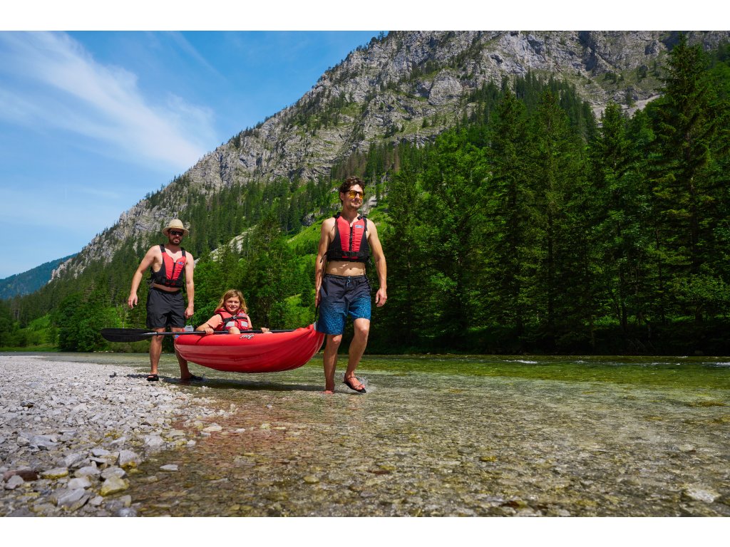 Twist 1 (260 × 79 cm, 7,4 kg, nośność 100 kg) to kompaktowy jednoosobowy nadmuchiwany kajak przeznaczony do rekreacyjnego pływania po jeziorach i spokojnych rzekach. Dzięki stabilnemu kadłubowi, niskiemu profilowi i płetwie kierunkowej utrzymuje kurs i jest łatwy w obsłudze. Wygodne siedzisko z oparciem zapewnia komfort nawet podczas dłuższych wypraw, a wielostopniowy podnóżek umożliwia indywidualną regulację. Niewielka waga ułatwia przenoszenie i transport.