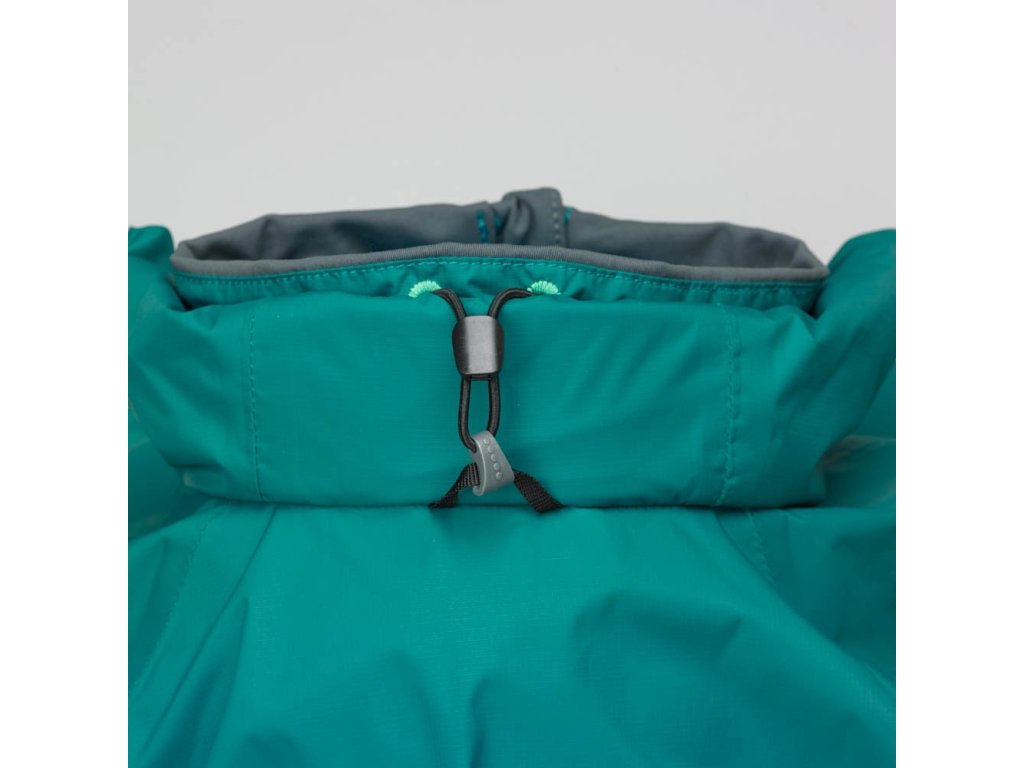 - Zwinięty / owinięty kapturem - kurtka składa się do własnego kaptura; kaptur jest regulowany.