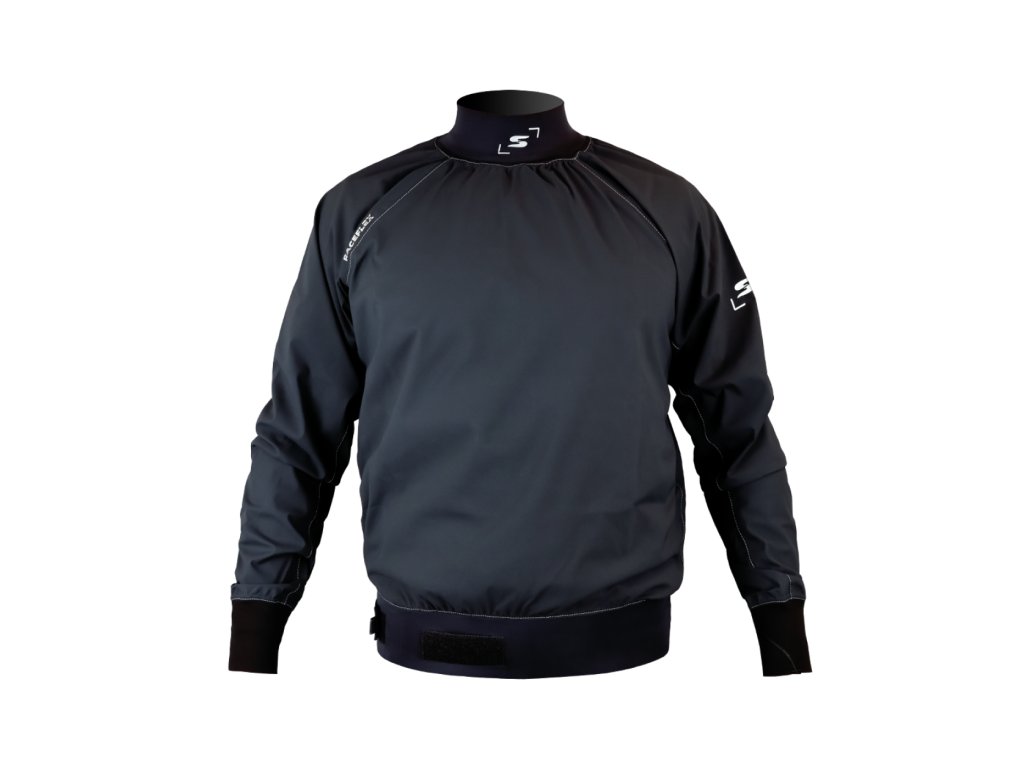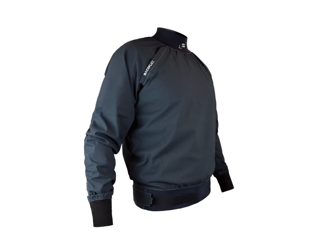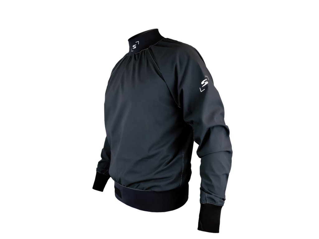 Střih bundy je anatomicky tvarovaný pro pozici v sedě při pádlování. Krční i zápěstní manžety jsou vyrobeny z tenkého a vysoce elastického neoprenu, který efektivně brání vniknutí vody, ale netlačí a nezpůsobuje odřeniny ani při intenzivním pohybu. Spodní lem je opatřen nastavitelným neoprenovým pásem, který perfektně těsní a drží bundu na svém místě.