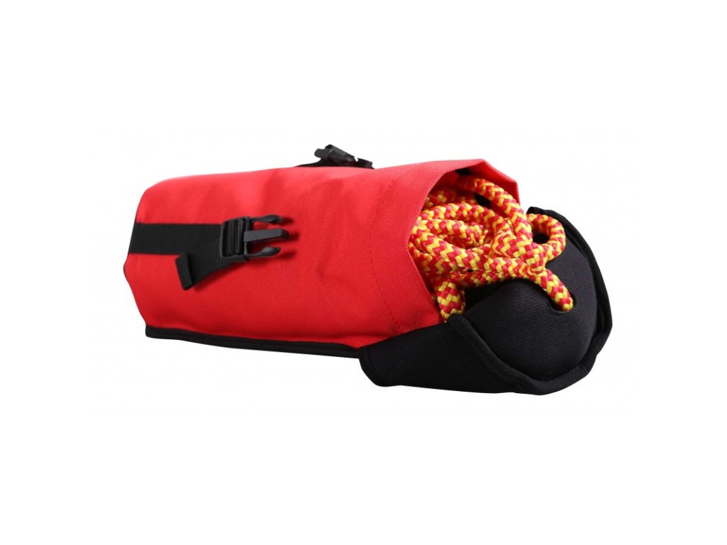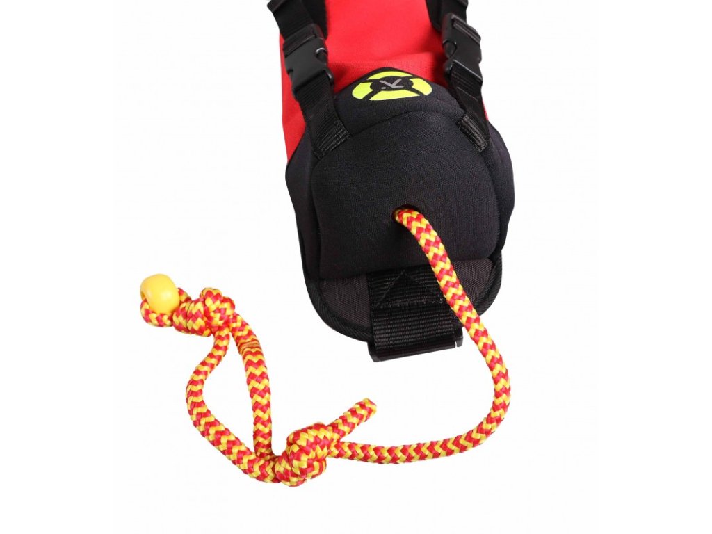 - Následným potiahnutím za loptičku v neoprénovom veku je vrhač pripravený na záchranu.